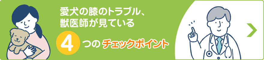 愛犬の膝の問題は、放置すると症状の悪化や合併症の発現などを引き起こし、加齢とともに日常生活にも支障をきたします。「最近歩き方がおかしい」「散歩が楽しそうじゃない」「階段の上り下りを嫌がる」などが初期症状となります。気になる事があったら、お気軽にご相談ください。